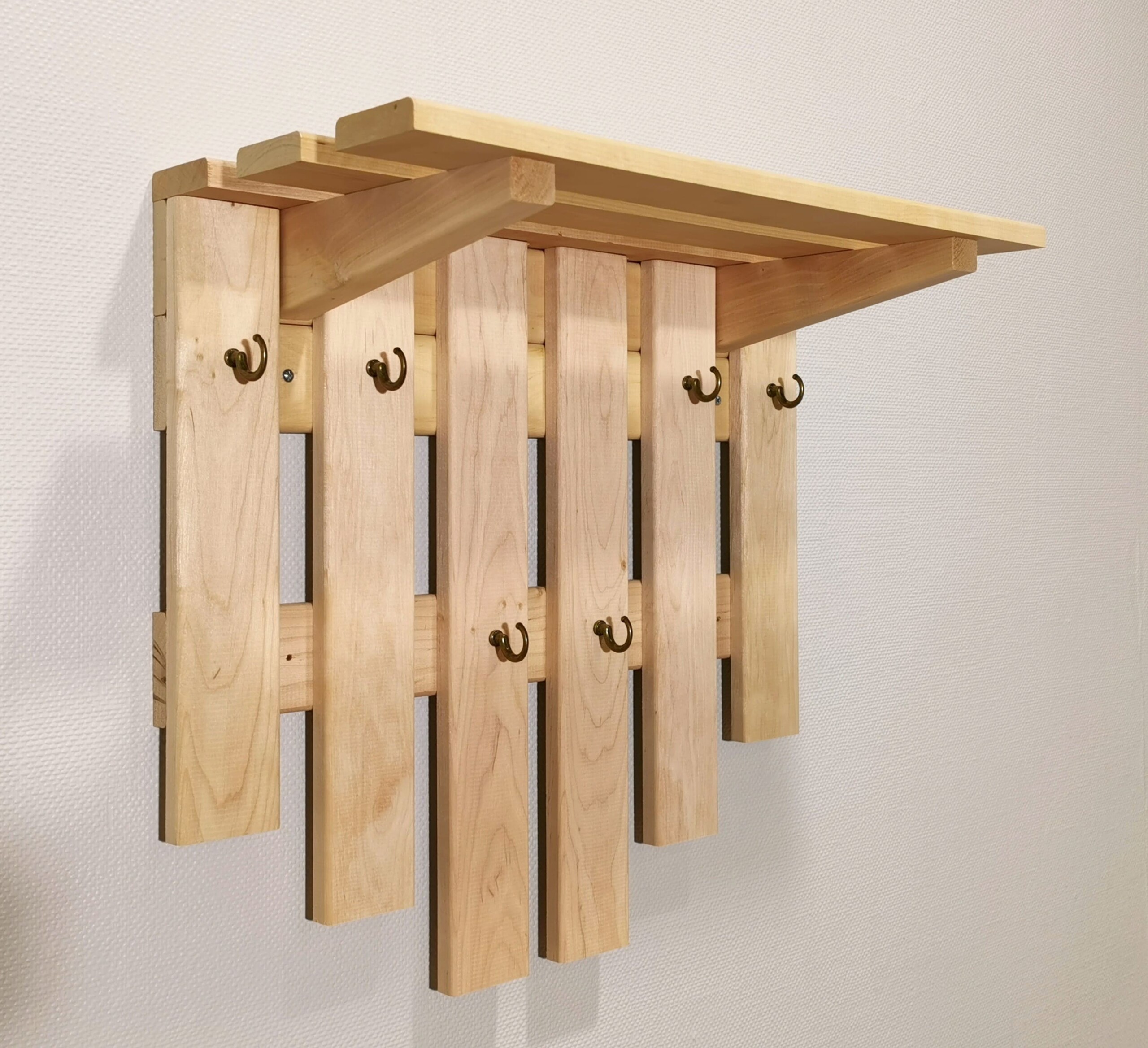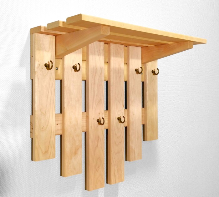 - Kaks ühes – nagi ja riiul. Sobib sauna eesruumi käterätikute hoiustamiseks, aga ka esikusse üleriiete ning eluruumidesse muude rõivaste hoiustamiseks.