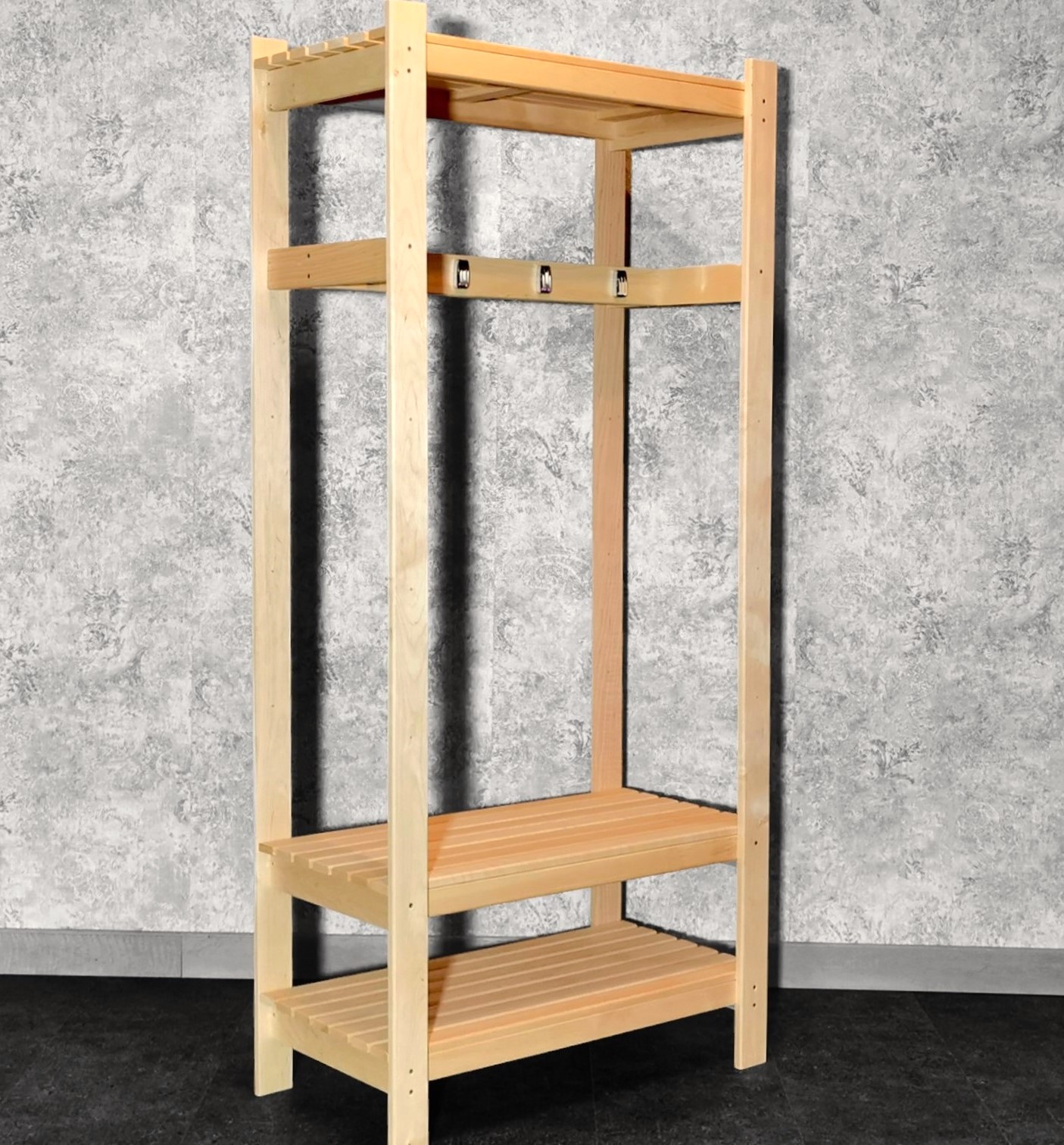 - Sobib esikusse, garderoobi (lühemate) üleriiete ning muude rõivaste riputamiseks ja ka sauna eesruumi käterätikute riputamiseks ja hoiustamiseks.